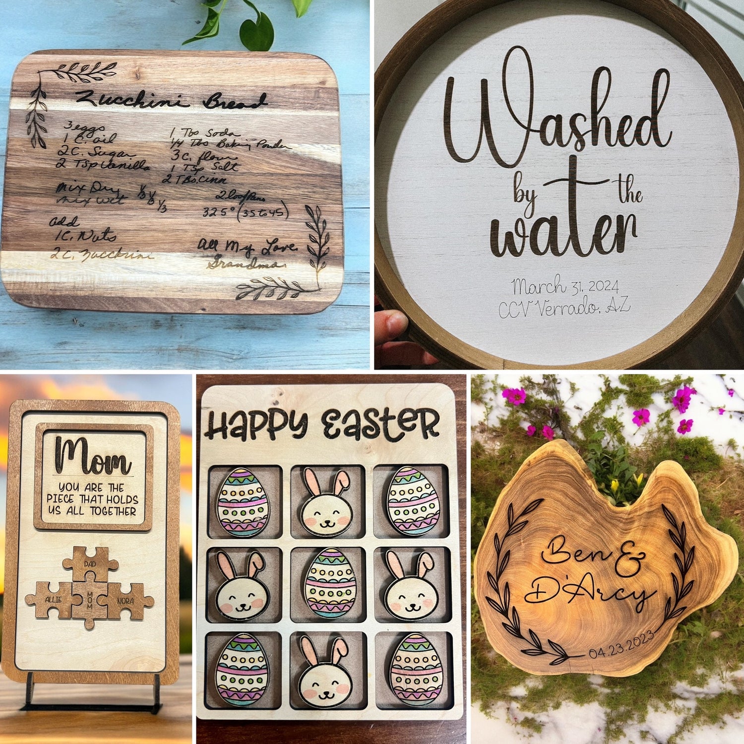Being an artist, Morgan has innate talent to bring a client’s vision to life. She really enjoys getting the small details right that make a big difference. “Tracing actual handwriting for pieces and making custom puzzles are my favorite items to make.”