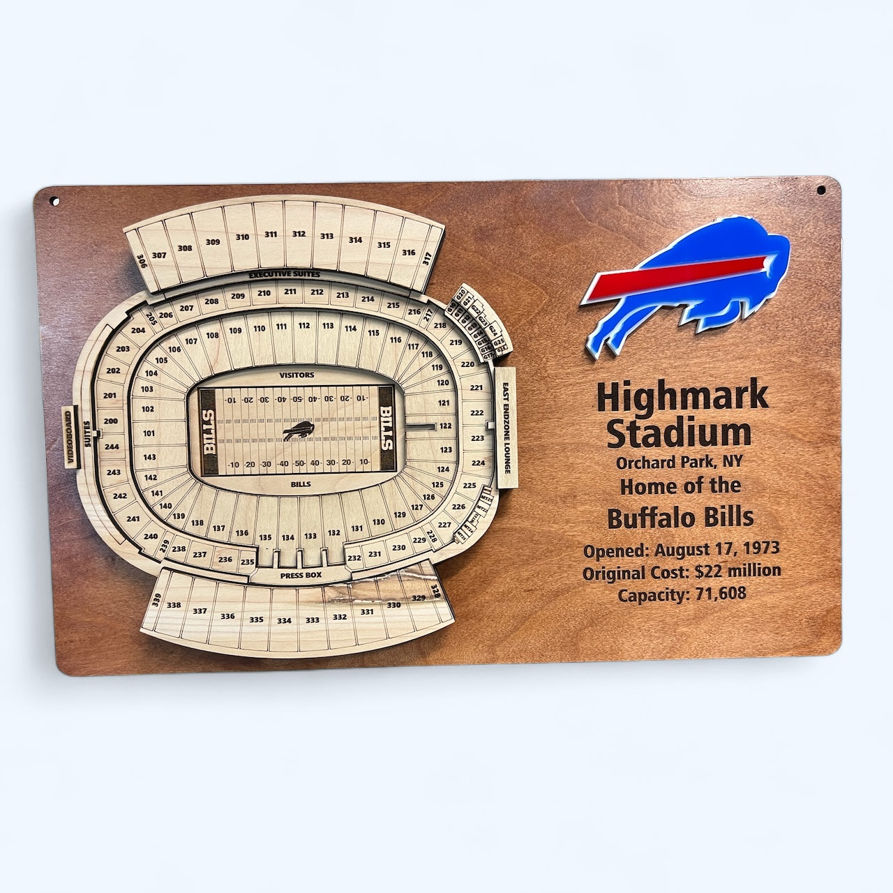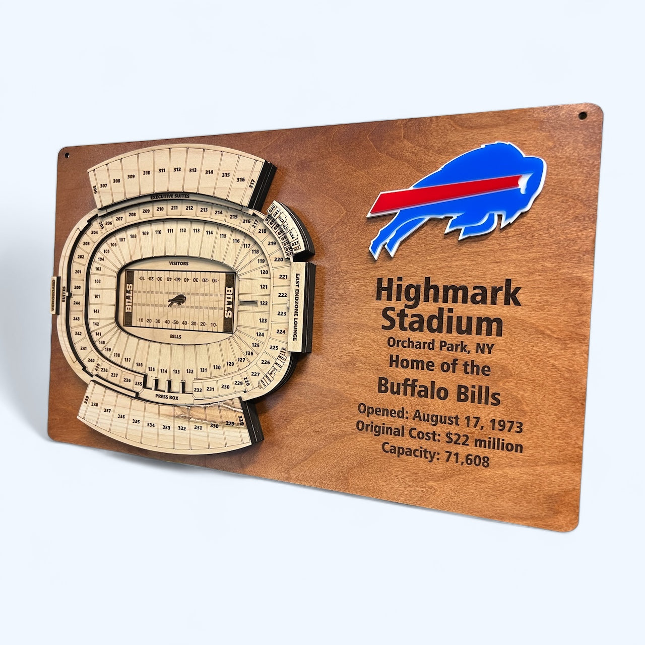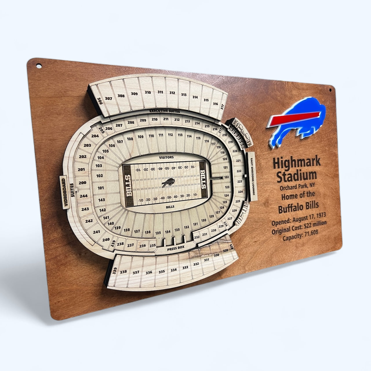 Immerse yourself in the passion of Buffalo Bills football with our meticulously crafted wood layered display, capturing the essence of Highmark Stadium's iconic moments. Perfect for Bills fans and NFL enthusiasts alike, this unique piece celebrates the spirit and energy of Buffalo's beloved team in stunning detail. Add a touch of gridiron greatness to your home decor or fan cave with this must-have collectible.