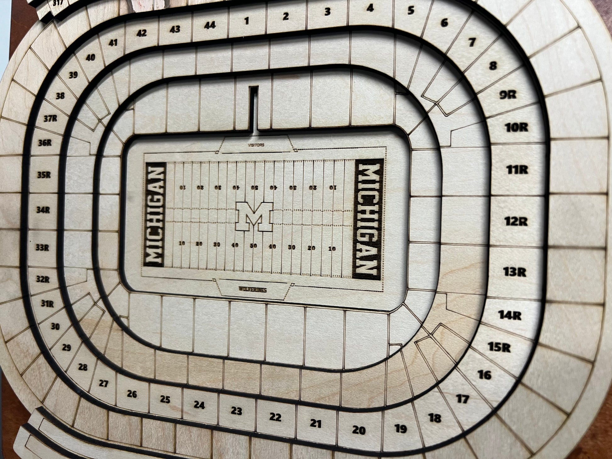 Experience the rich tradition of Wolverines football with our finely crafted wood layered display, celebrating the iconic moments of Michigan Stadium, where history meets passion.