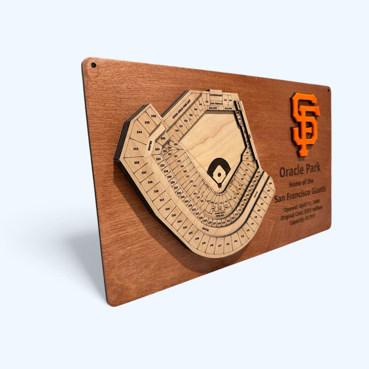 Celebrate the magic of San Francisco Giants baseball with our meticulously crafted wood 3D display art, capturing the essence of Oracle Park's iconic moments. Perfect for Giants fans and MLB enthusiasts alike, this unique piece showcases the spirit and beauty of San Francisco's beloved ballpark in stunning detail. Add a touch of baseball history to your home decor or fan cave with this must-have collectible.