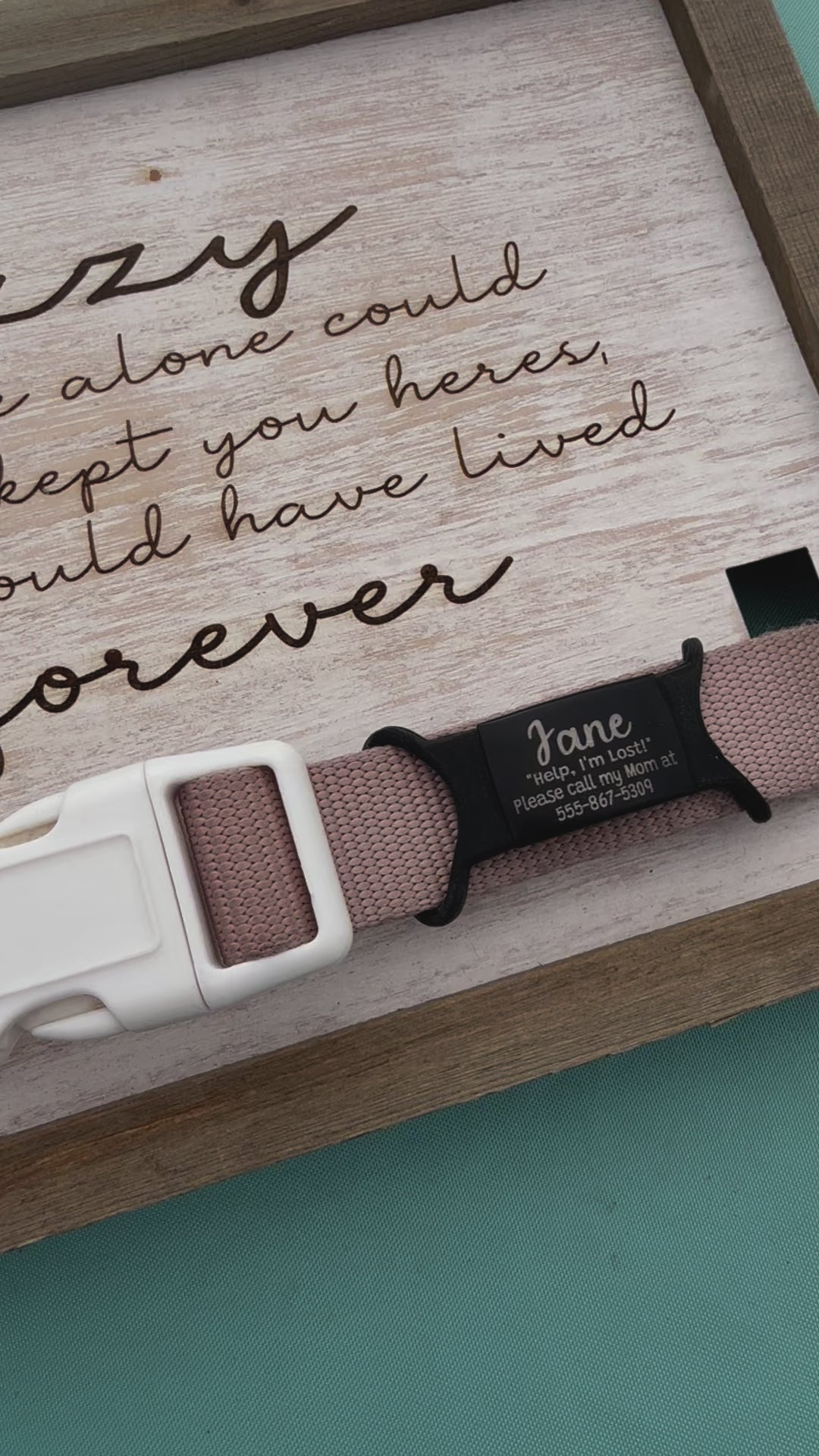 - PERSONALIZATION included in the price! Our XS/S size can have up to 3 lines(1 larger for name and 2 smaller lines for information). Our M/L size can have up to 4 lines(1 larger for name and 3 smaller lines for information). PLEASE LIST THE INFORMATION YOU NEED ON THE TAG AND THE SIZE IN THE “Note to Seller” SECTION OF THE CHECKOUT PROCESS.